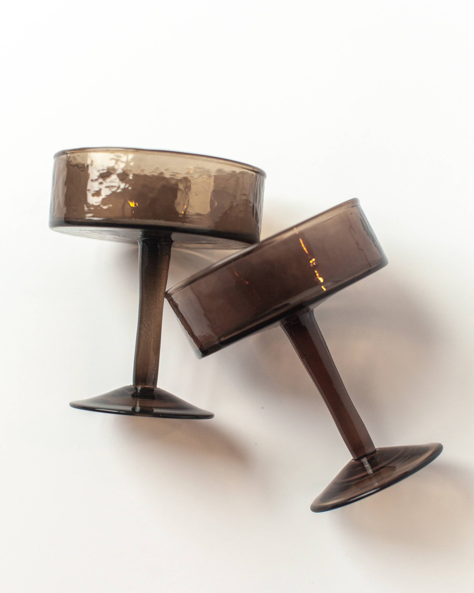 Handblown Hammered Coupe Cocktail Glass Pair