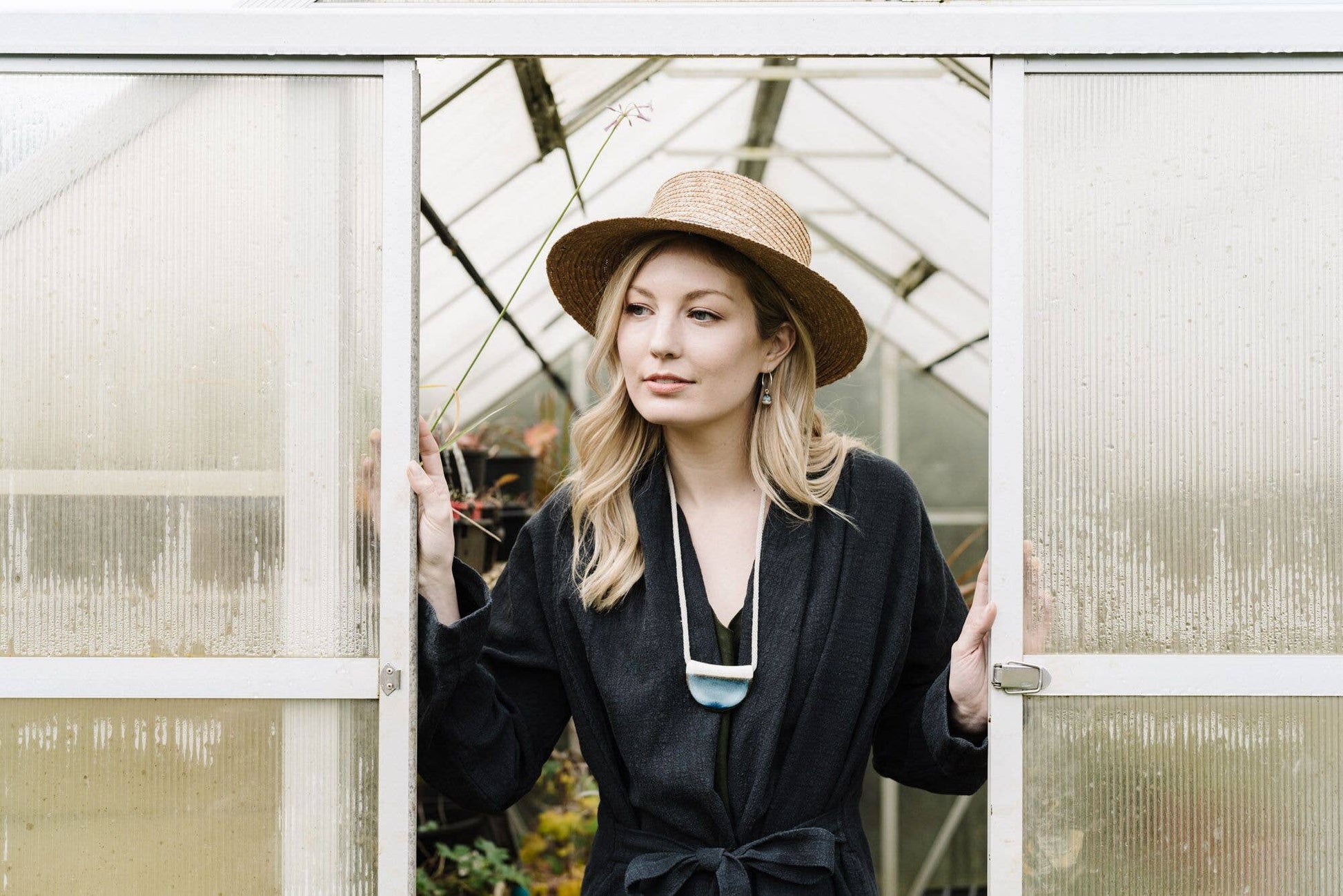 Handcrafted ceramic stoneware hoops with sterling silver findings, designed and made in Australia by Julia Denes. Each pair features a 1.38-inch drop and arrives in a handmade cotton pouch from a women's cooperative in Nepal. Ethically produced with understated elegance.