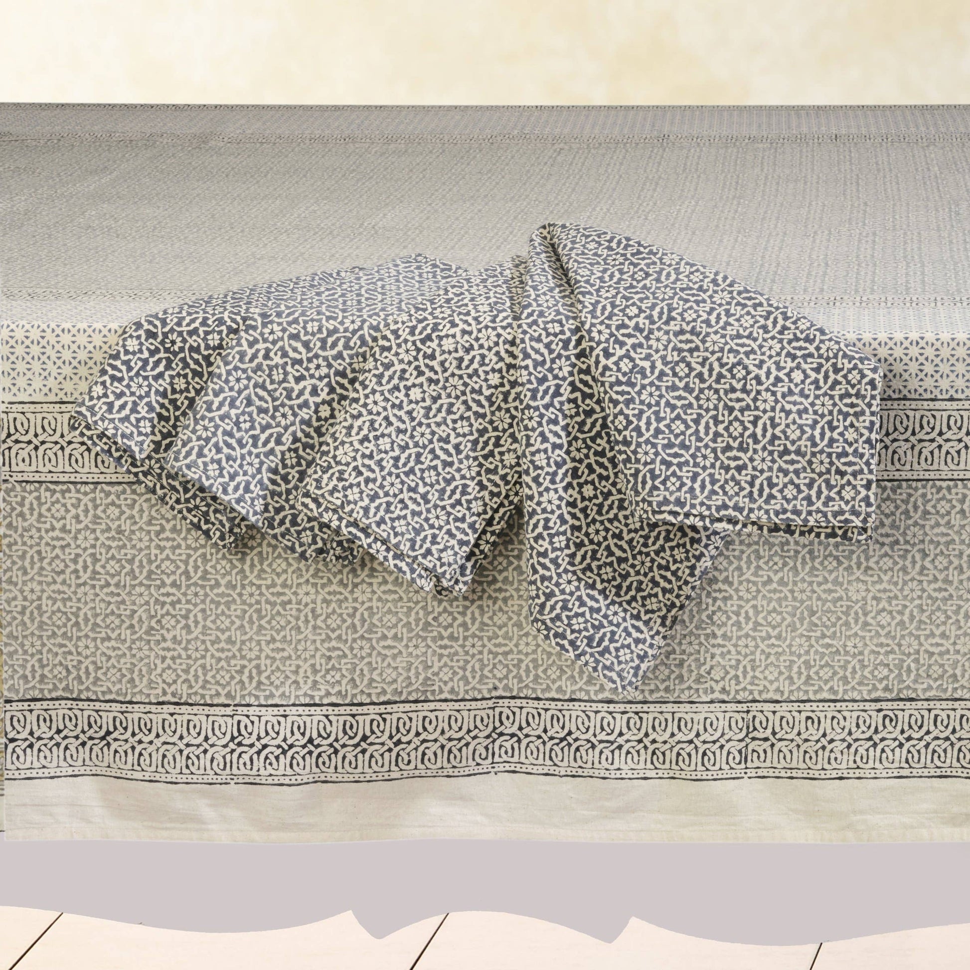 OPAL GARDEN Tablecloth, Hand Block Printed Cotton